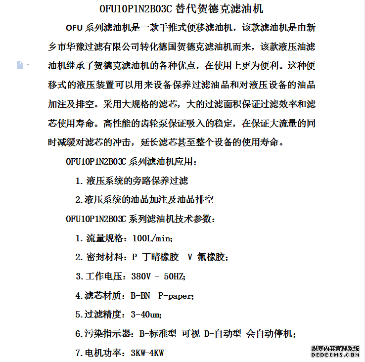 OFU10P1N2B03C替代賀德克濾油機