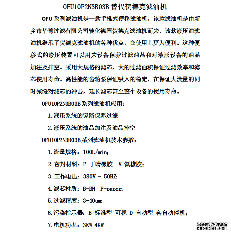 OFU10P2N2B03B替代賀德克濾油機