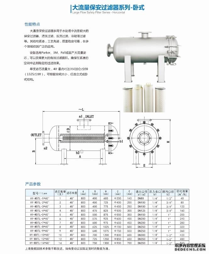 大流量保安過濾器臥式HY-WDTL-1*40"