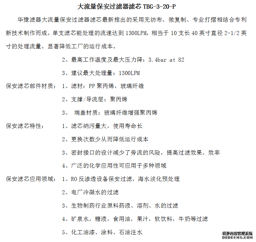 大流量保安過濾器濾芯TBG-3-20-P