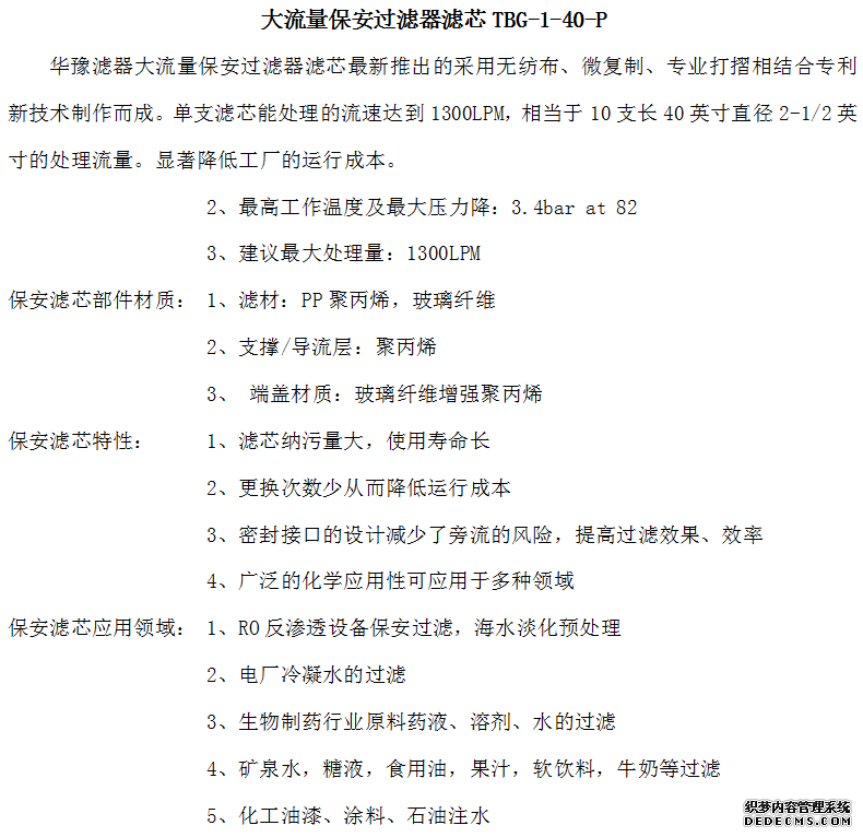 大流量保安過(guò)濾器濾芯TBG-1-40-P